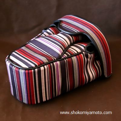 一眼レフカメラケース: おしゃれ かわいい:ブラック&レッド・ストライプ