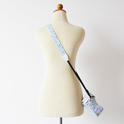 ミラーレス用カメラストラップ(3cm幅): おしゃれ かわいい:リバティ・リリアンズ・ベリーズ(ブルー) ※アクリル・コーティング・オプション対応