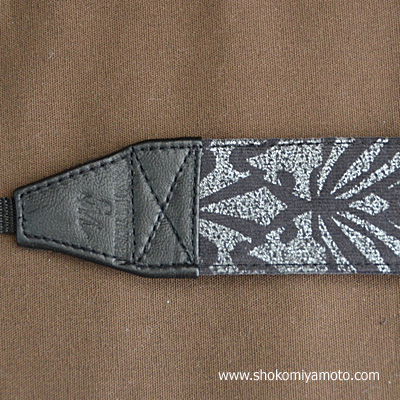 一眼レフカメラストラップ: おしゃれ かわいい:ブラック&シルバー・リーフ