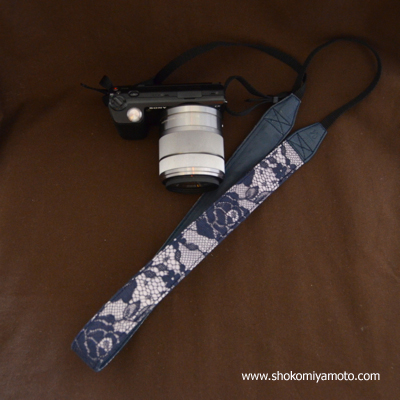 ミラーレス用カメラストラップ(3cm幅): おしゃれ かわいい:フレンチローズ(ダークブルー)