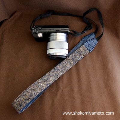 ミラーレス用カメラストラップ(3cm幅): おしゃれ かわいい:ブルー・ミックス・ツイード