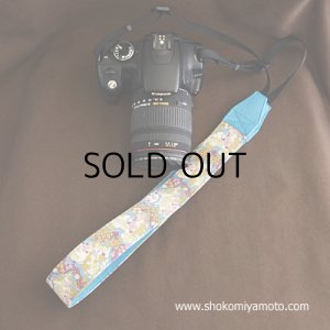 英国リバティ社のプリントを使った一眼レフカメラ用ストラップです。