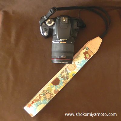 英国リバティ社のプリントを使った一眼レフカメラストラップをご用意しました。
