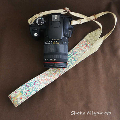 英国リバティ社のプリントを使った一眼レフカメラ用ストラップです。