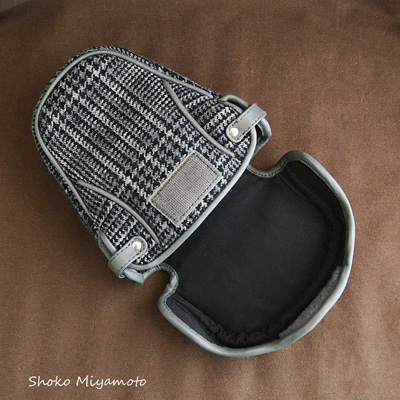 ケース先端のレンズ部分はスポンジの上からバッグ底用芯地を用いしっかりガード。