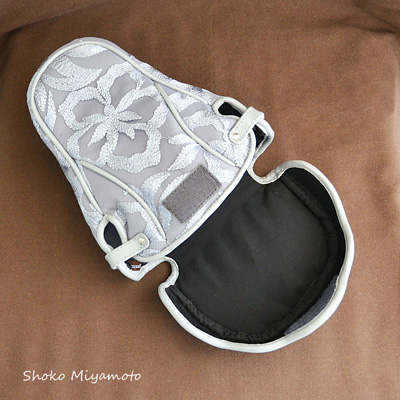 ケース先端のレンズ部分はスポンジの上からバッグ底用芯地を用いしっかりガード。