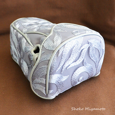 フランス製のゴージャスなリバーレースで、カメラケースをおつくりしました。